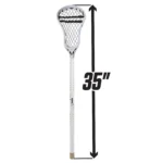 Brine 35″ Junior Aluminum Lacrosse Player Stick. Unleash your young athlete’s potential with the Brine 35″ Junior Aluminum Lacrosse Stick, expertly designed to play recreational lacrosse! Designed for recreational play and to learn basics of hand-eye coordination, cradling and shooting. This lightweight and durable lacrosse stick is a perfect choice for players developing their game. The 1.7 lbs weight makes it easy for younger players to handle, offering better control and ball handling. Beautiful and sleek white color with gold accents, it’s not just a sports tool but a style statement on the field.